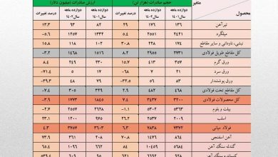 انجمن تولیدکنندگان فولاد ایران آمار کامل حجم و ارزش صادرات سال ۱۴۰۲ زنجیره فولاد کشور را منتشر کرد. نکات مهم…