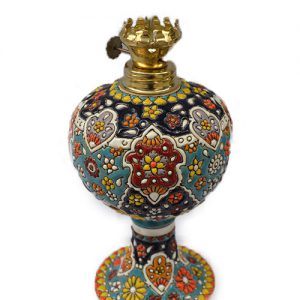 چراغ لمپا سفالی مینا کاری شده کوچک