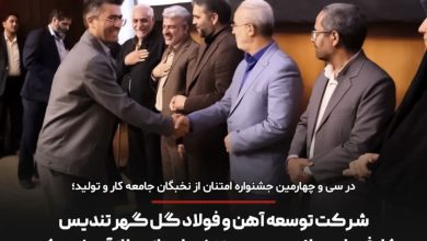 در سی و چهارمین جشنواره امتنان از نخبگان جامعه کار و تولید؛شرکت توسعه آهن و فولاد گل گهر تندیس کارفرمای سلامت محور منتخب استانی را از آن خود کرددر آئین سی و چهارمین جشنواره امتنان از نخبگان جامعه کار و تولید تندیس کارفرمای سلامت محور منتخب استانی به…