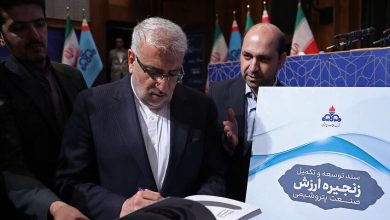 با حضور وزیر نفت؛سند توسعه و تکمیل زنجیره ارزش صنعت پتروشیمی رونمایی شدسند توسعه و تکمیل زنجیره ارزش صنعت پتروشیمی با حضور «جواد اوجی» وزیر نفت و «مرتضی شاهمیرزایی» مدیرعامل شرکت ملی…