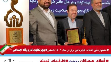 جشنواره ملی انتخاب کارآفرینان و کارفرمایان برتر سال 1401فولاد هرمزگان به عنوان کارفرمای نمونه کشور انتخاب شددر آیین اختتامیه جشنواره ملی انتخاب کارآفرینان و کارفرمایان برتر سال 1401، عطاالله معروفخانی مدیرعامل شرکت فولاد هرمزگان تندیس شرکت…